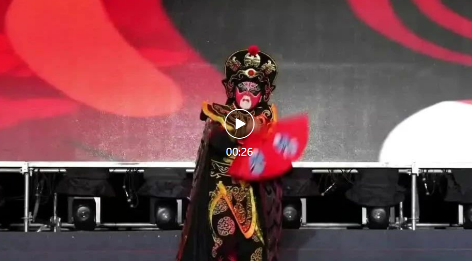 将川剧搬到了蓝天红底的操场上