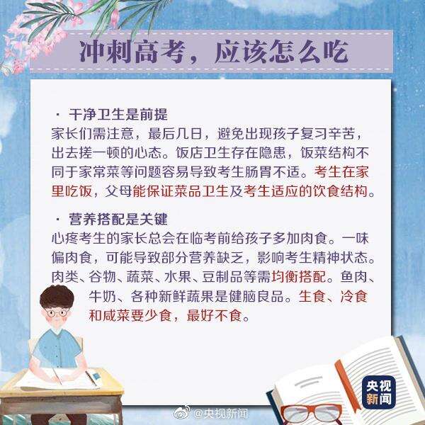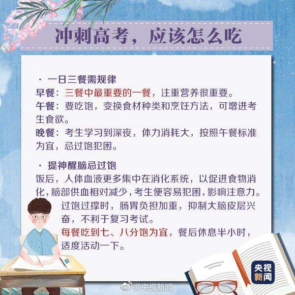 3天后就是高考的日子,1291万名学子即将踏上考场。临近大考,睡不好觉怎么办?冲刺高考,怎么吃才营养又健康?收好这份考前心态调整攻略↓↓祝福每一位考生,加油!