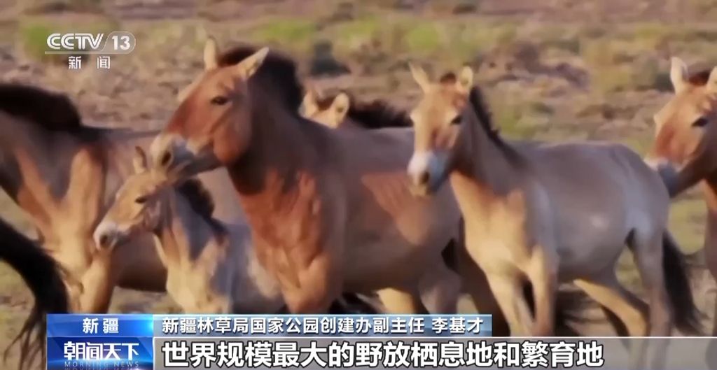 新疆林草局国家公园创建办副主任 李基才:卡拉麦里国家公园候选区分布有蒙古野驴、鹅喉羚、盘羊等众多干旱荒漠有蹄类野生动物,分布着全国80%以上的蒙古野驴种群,是濒危物种普氏野马的原生地、世界规模最大的野放栖息地和繁育地。