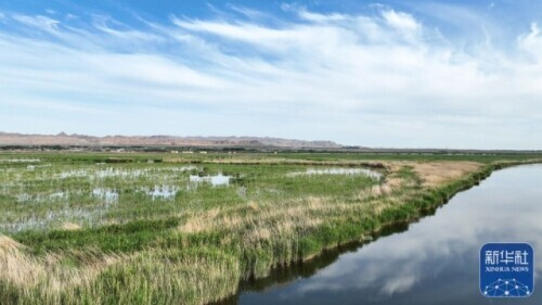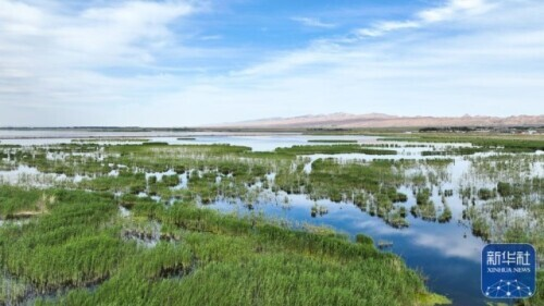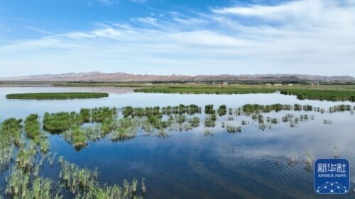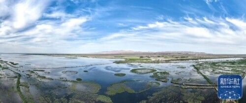 这是6月4日拍摄的位于内蒙古巴彦淖尔市乌拉特前旗的乌梁素海(无人机全景照片)。新华社记者 贝赫 摄