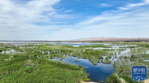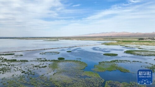 夏日里,位于内蒙古巴彦淖尔市乌拉特前旗的乌梁素海波光粼粼,风景如画。