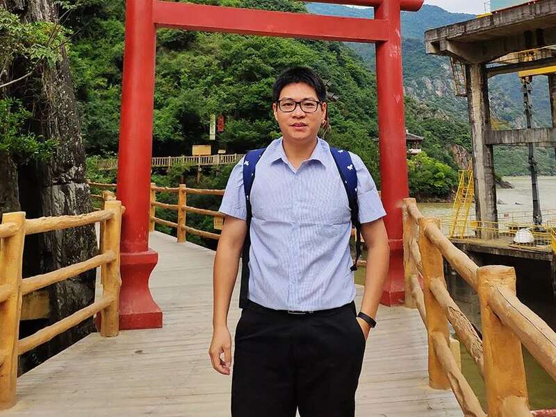 吴巍巍考察云林县麦寮乡拱范宫。受访者供图