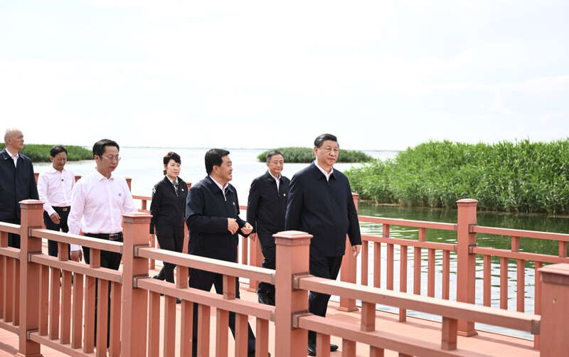 6月5日下午,中共中央总书记、国家主席、中央军委主席习近平来到位于内蒙古自治区巴彦淖尔市乌拉特前旗境内的乌梁素海,了解当地坚持山水林田湖草沙一体化保护和系统治理、促进生态环境恢复等情况,察看乌梁素海自然风貌和周边生态环境。