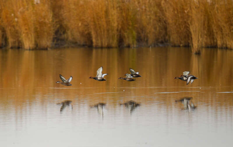 2020年10月28日,候鸟在乌梁素海飞翔。
