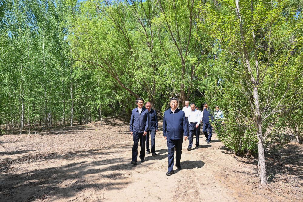 6日上午,习近平来到巴彦淖尔市临河区国营新华林场,了解“三北”防护林体系建设情况。