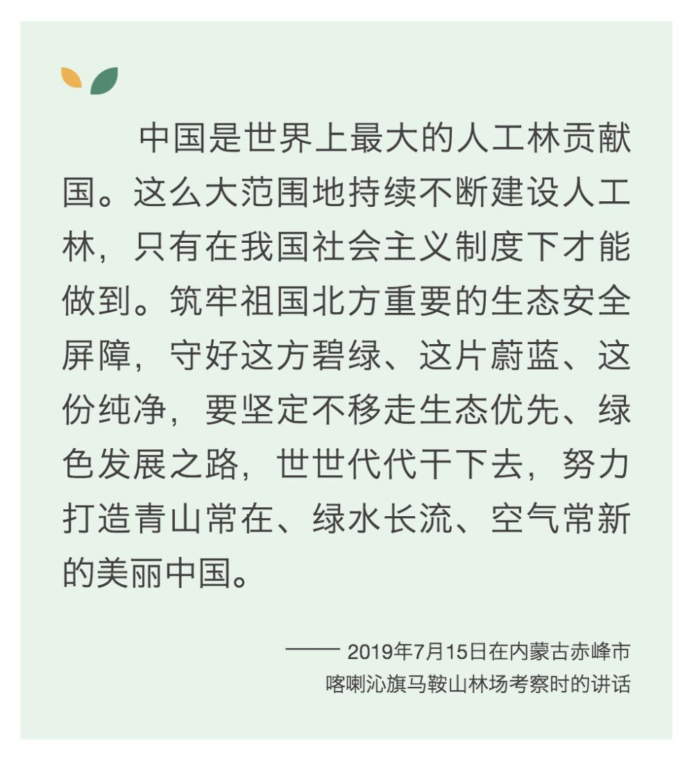 习近平总书记高度重视国土绿化,多次参加植树造林,前往实地考察,作出重要指示。