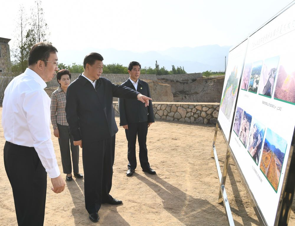 2020年6月9日,习近平在银川市西夏区贺兰山东麓,听取贺兰山生态保护和环境综合整治情况汇报。