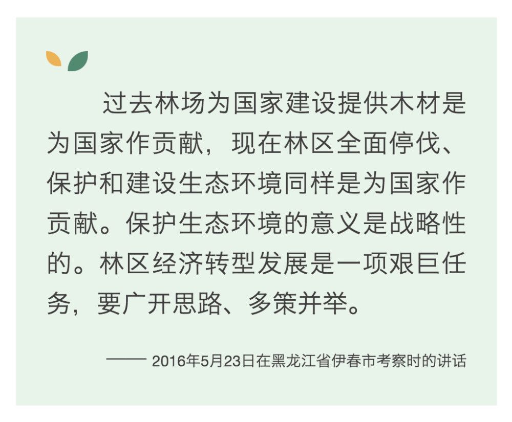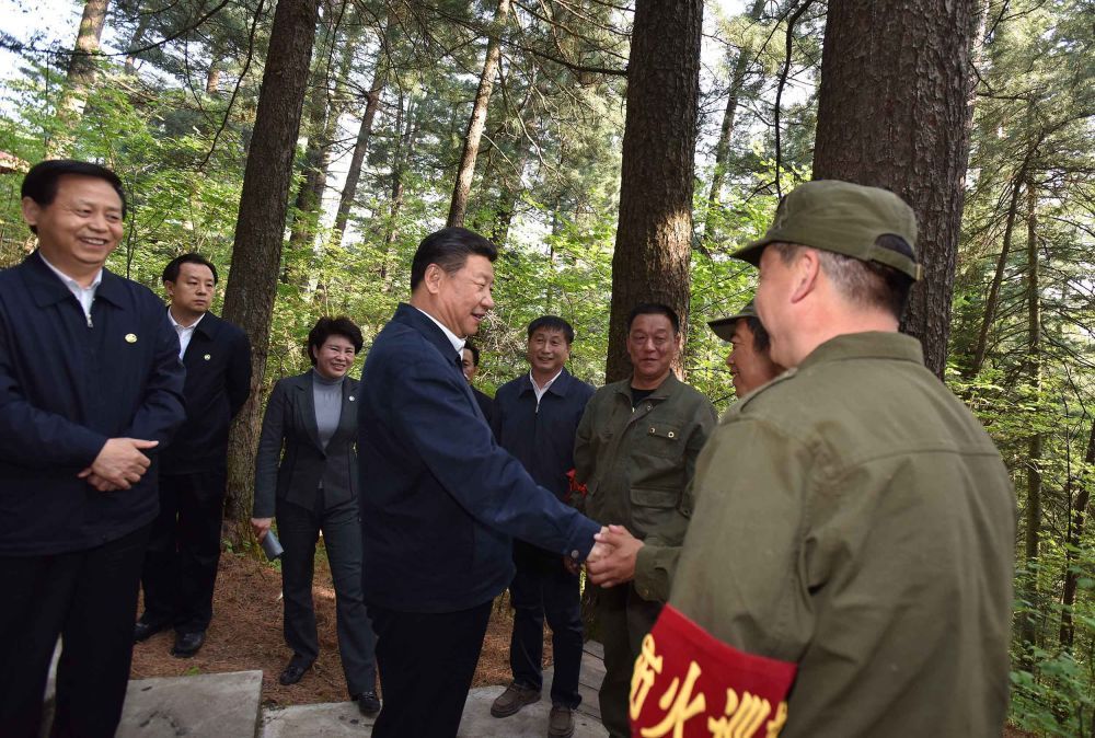 2016年5月23日,习近平在黑龙江省伊春市上甘岭林业局溪水国家森林公园考察时,叮嘱林场工作人员一定要把森林资源保护好。
