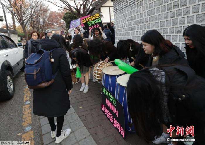 韩国高考全称为“大学修学能力考试”,一般在每年的11月中旬举行。考生需要在一天内考完5门科目,曾有韩国学生形容这一考试是场“核战役”。