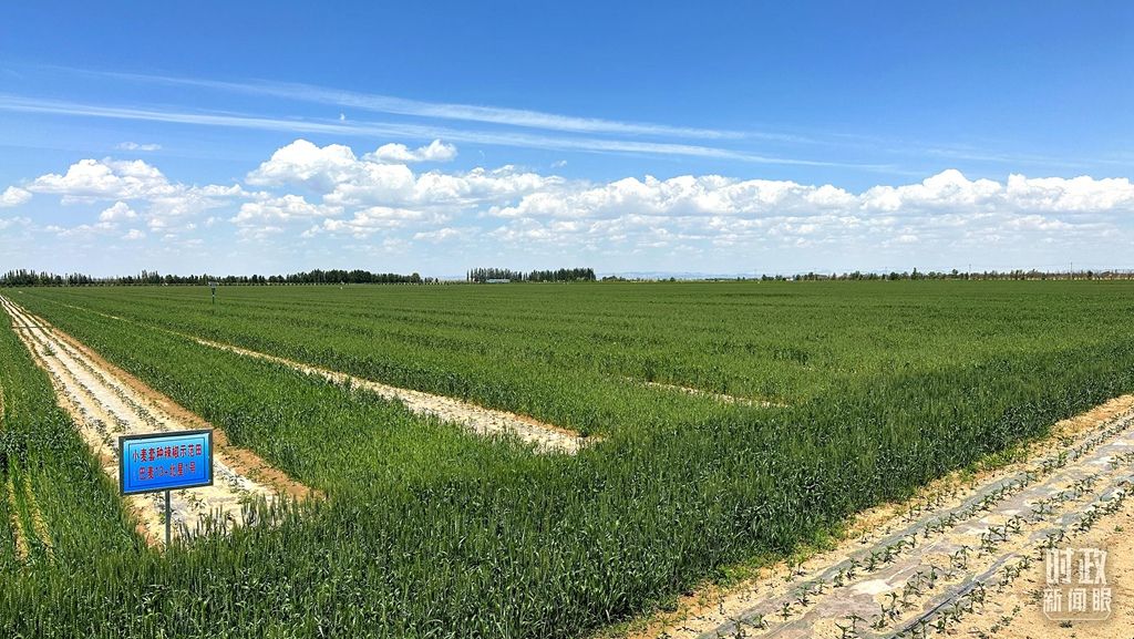 这片示范园区核心区面积近4000亩,主要开展盐碱沙荒地改良改造和综合利用,种植的品种有玉米、木耳、葫芦、小麦套种辣椒等。