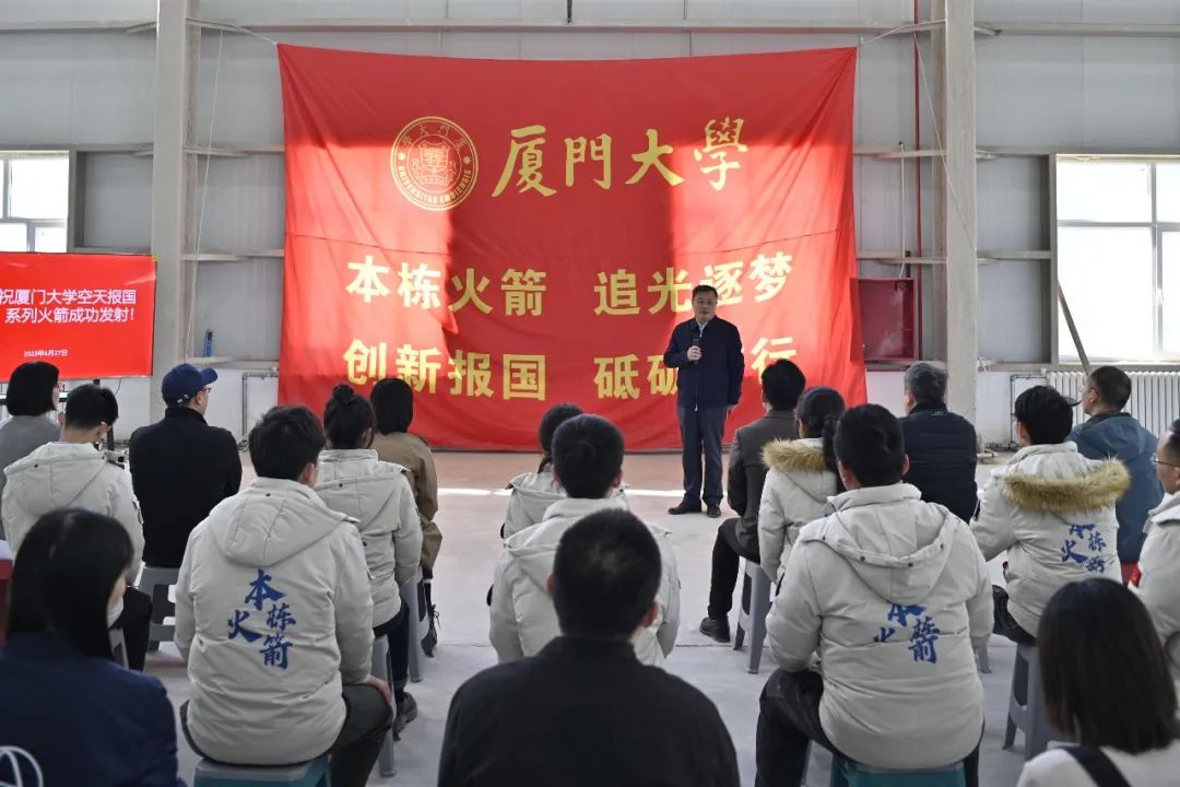 ∆ 厦门大学党委书记张荣教授到现场指导本次火箭研发实践课程的发射任务。