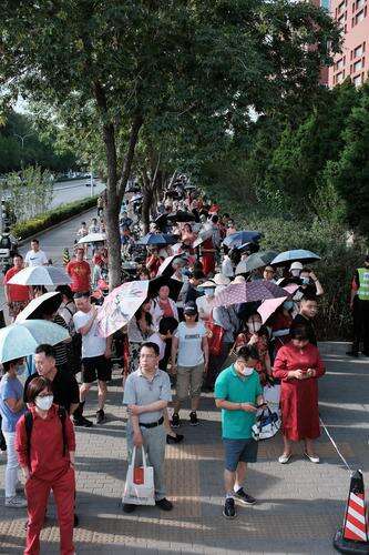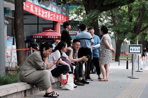2023年6月7日下午,北京,清华大学附属中学考点。此时距当日考试结束还剩5分钟,学生家长们校门口等待考生出场。