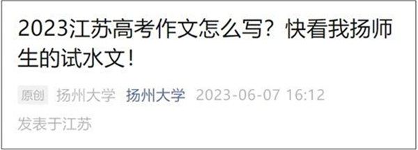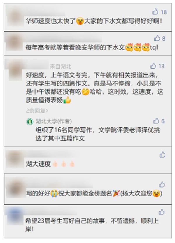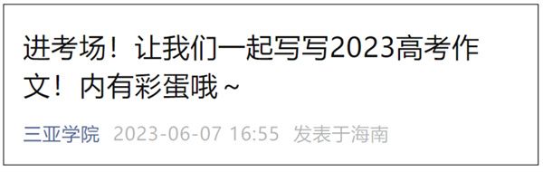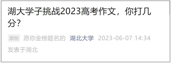 2023年高考作文题公布后,华南师范大学、湖北大学、扬州大学、三亚学院等多所高校邀请在校大学生写起了作文,并将作文在官微发布。