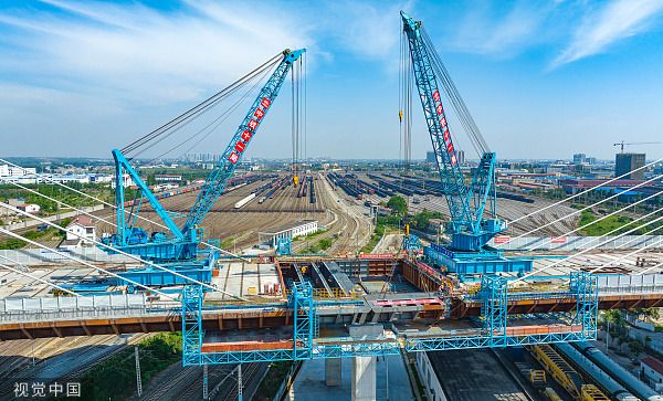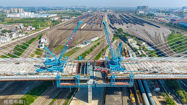 2023年6月8日,湖北襄阳,由中铁十一局承建的襄阳北编组站大桥顺利合龙,为大桥如期建成通车奠定坚实基础。