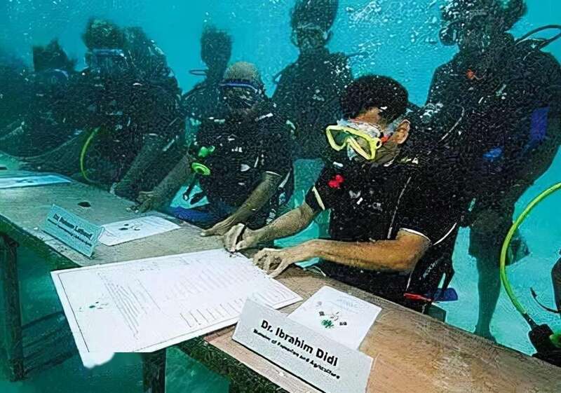 为了呼吁人们重视这一危机,马尔代夫曾经主持召开了全球首个“水下内阁会议”,以呼吁人们采取行动保护环境。