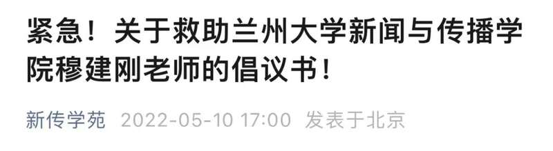 去年5月9日,一张名为“紧急救助穆建刚老师倡议书”在兰州大学校友群里广泛流传。倡议书显示,穆建刚因突发疾病急需心脏移植,向校友募捐。