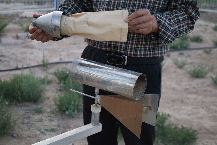 在甘肃省治沙研究所民勤治沙综合试验站,每次出现沙尘天气后,工程师王多泽都要走进野外科学观测站录取数据。他逐个取下沙尘暴观测塔上的滤袋装置,收集沙尘后回实验室烘干称重。“观测站不仅可以获取风沙流数据,还可以监测植被状况、土壤和水文变化等数据,入网上云后提供给远端科研人员用于研究。”王多泽说。