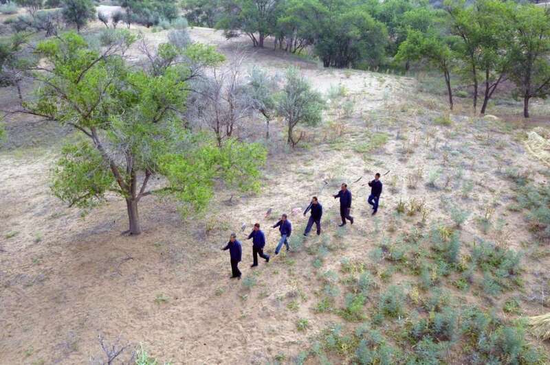俯下身,治沙靠机械。抬起头,防治在“云端”。
