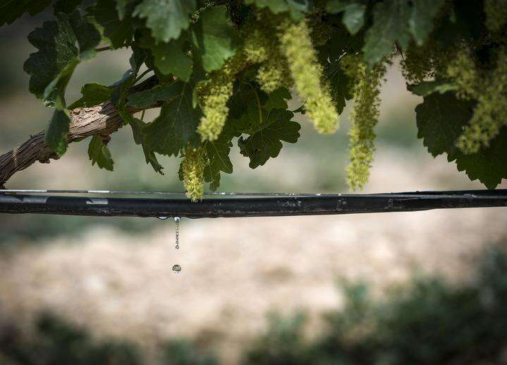 中粮长城天赋酿酒葡萄种植基地借助智慧葡萄园灌溉系统,精确控制用水量,进行调亏灌溉(6月5日摄)。新华社记者 冯开华 摄