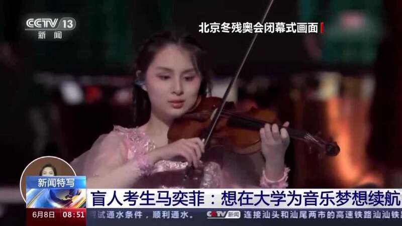 这名视障考生叫马奕菲。小奕菲幼年双目失明,但她心向光明、乐观上进。靠着“别人能做到的我也能做到”的信念,小奕菲勤奋刻苦,文化课成绩优异。求学的这些年来,她还一直追寻着自己的音乐梦想。2022年,在北京冬残奥会的闭幕式上,主火炬就是伴随着她演奏的《雪花》而缓缓熄灭的。