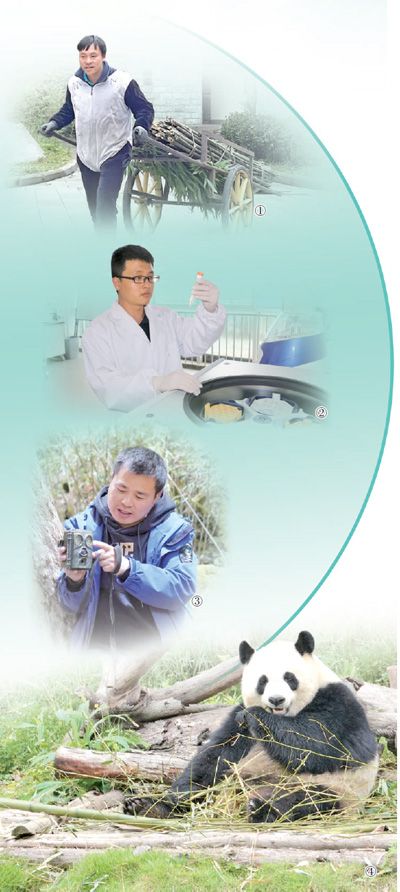 在工作中,张大磊要给大熊猫喂食,打扫圈舍。每个工作日的一大早,他就来到基地,换上熊猫伪装服,为大熊猫调配食物。经过多年饲养,他积累了不少心得。“养大熊猫,要琢磨它们所喜欢的食物,还要根据牙齿磨损程度,调整饮食结构。”张大磊说,必须掌握每只大熊猫的饮食偏好和身体状况。
