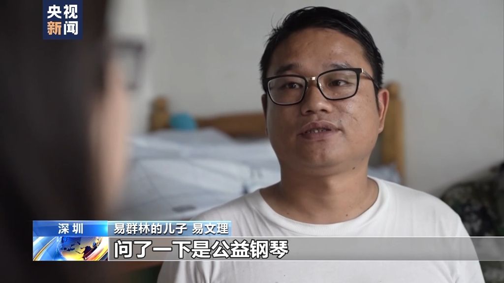 记者在深圳的一处工地宿舍,找到了视频中弹钢琴的工人。他叫易群林,周围人都喊他老易。老易来自湖南岳阳,20多年前他来到深圳。如今,他和儿子易文理一起在深圳做建筑临工。当初,就是儿子易文理拍摄了他在街头弹钢琴的视频。