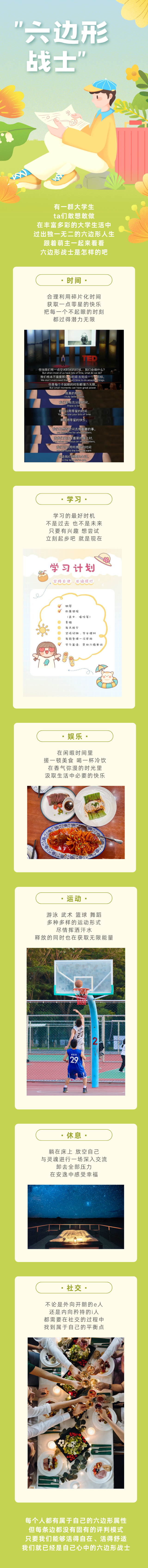 作为网络热词,“六边形战士”的意思是:使用六边形雷达图来描绘一个在各方面素质都十分突出的人,即全能发展的人才。在日常生活中,六边形战士则指代一种自我管理的理念,即能够将时间、学习、娱乐、运动、休息、社交这六个方面平衡兼顾,从而提高自己的生产力和幸福感。这种理念在当今社会越来越受到年轻人的关注和推崇。很多大学生都以成为六边形战士为目标,许多人都在努力追求六边形的人生。