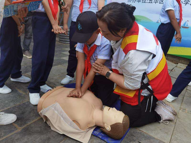 活动中,来自红十字会、消防等机构组成的青少年防溺水宣传教育志愿服务队,通过参与式、体验式教学方法,深入浅出地讲解了溺水者的真实感受、防溺水的基本知识以及在遇他人落水时该如何采取措施,并教大家进行心肺复苏的正确操作方法。