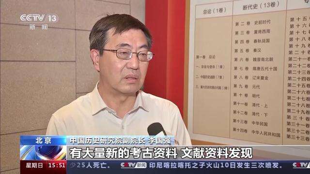 中国历史研究院副院长 李国强:那么距离今天我们前一部通史已经过去20多年,在20多年的时间里边,有大量新的考古资料、文献资料发现,那么需要以新的史料、新的理论、新的方法来观察中国历史。《(新编)中国通史》跨时代跨度非常长,一直从史前时期,写到党的二十大,这样一个时间跨度,在过去的通史编纂当中是前所未有的。同时我们《(新编)中国通史》也采取了断代史与专门史相结合的这样一个全新体例,这在以往也是前所未有的。