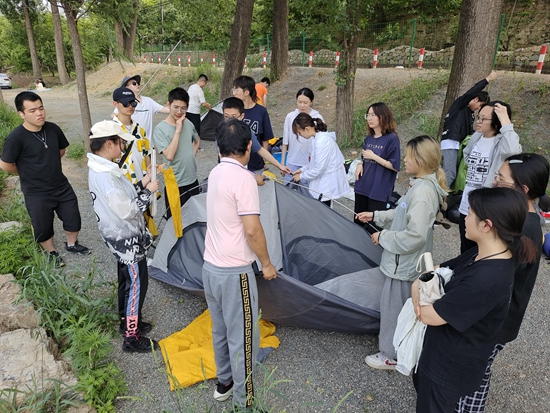 没做选择题的他们,学习支天幕、打地钉,吹着晚风,吃着烧烤,一样惬意。