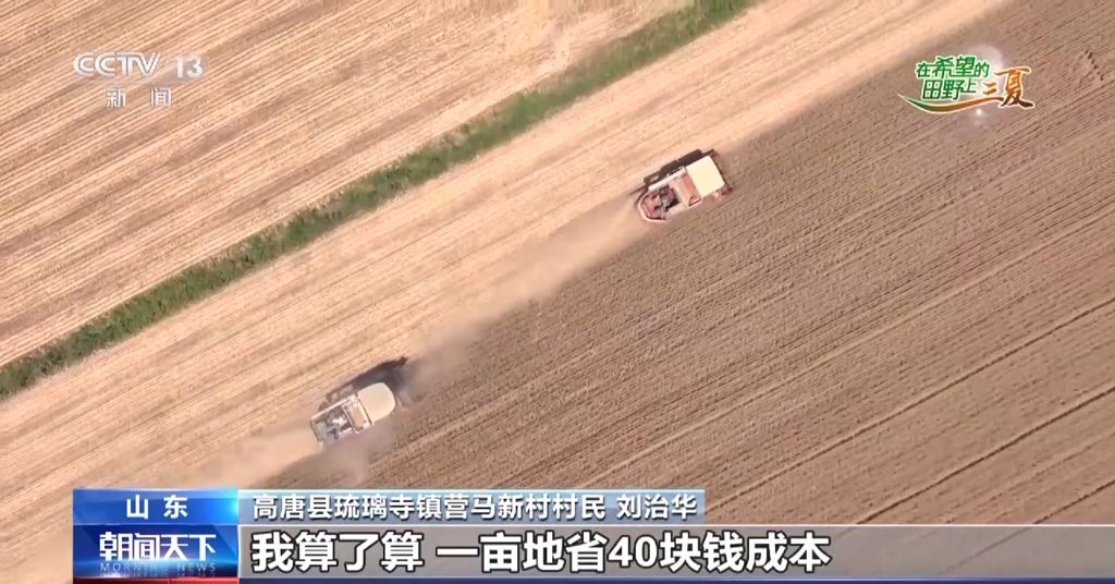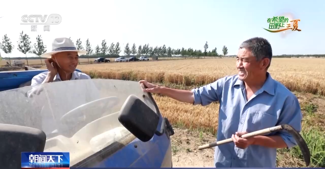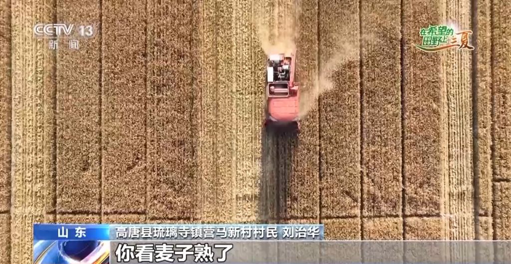 高唐县琉璃寺镇营马新村村民 刘治华:现在种地很省事,你看麦子熟了,咱光在这看着卸麦子,又不用人割,可省心了,跟原先不一样了。