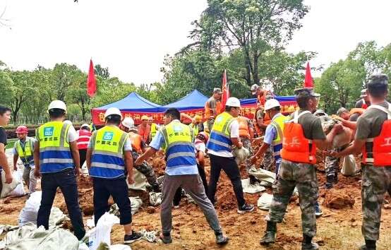 防汛抗洪中的青年身影。