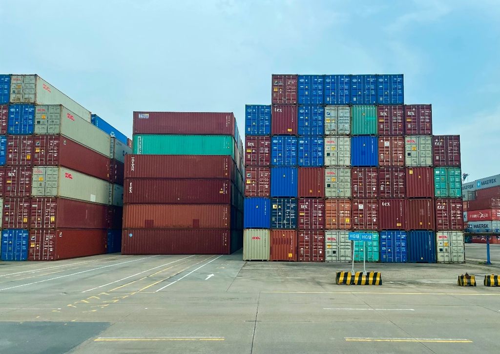 这是6月13日拍摄的广州港南沙港区的集装箱。新华网 陈畅 摄