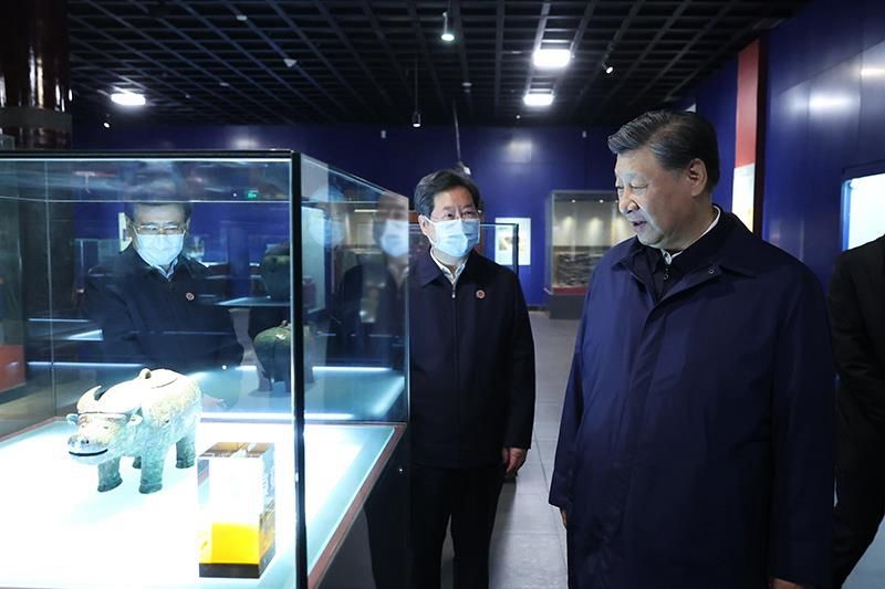 6月2日,中国历史研究院。习近平总书记在一件展品前,驻足凝望。