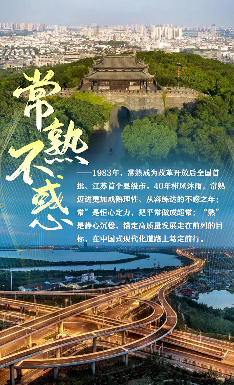 常熟40年栉风沐雨,不仅综合实力稳居全国百强县市前五,还入选了首批“国际湿地城市”;家喻户晓的沙家浜既是红色寻根地,也成为乡村振兴的排头兵;改革开放初期蹚出“碧溪之路”的小镇,现已是高端产业集聚的滨江新城,依然澎湃着与时俱进的动能活力。
