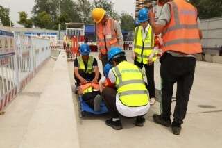 中国青年报客户端讯(金芝 中青报·中青网记者 王海涵)“报告经理,我是现场队长常健,刚在巡视过程中发现东端头井处出现缺口,大量雨水涌入基坑,情况不容乐观,请指示!”近日,25岁的青年安全监督岗岗员常健戴上安全帽,挽上红袖章,开始了演练工作。