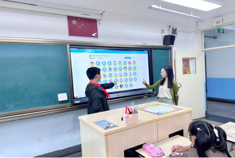 在该校五年级3班的课堂上,一位老师正使用黑板大屏的评价系统,为表现有进步的孩子,加上一颗“小星星”。这套“用星迈好每一步”的过程性等第制评价,是学校创设多年沉淀的一套学生评价体系。