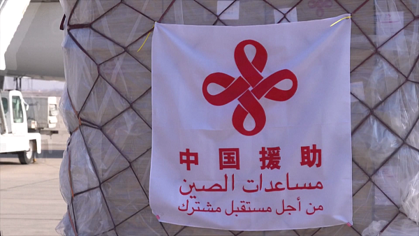 今年2月15日,中国政府援助叙利亚抗震救灾人道主义物资运抵叙首都大马士革。 视觉中国供图