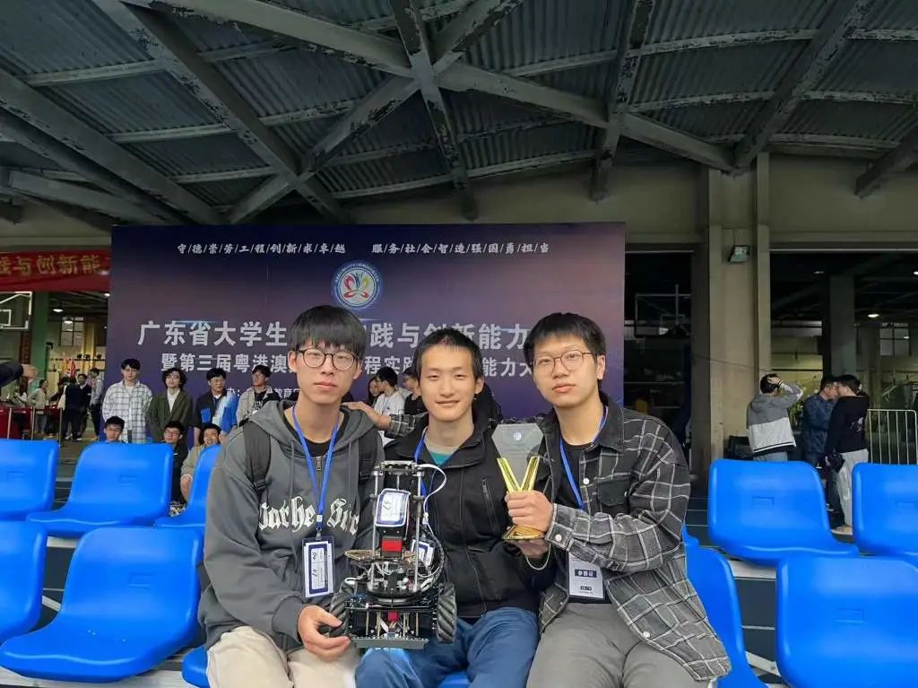 大二时,陈文谦每次路过实验室,抬头总能看到工学院的同学在做机器,低头打开手机B站,也有很多关于智能机器的视频。“为什么我不做呢?”陈文谦参赛的决心越来越强烈。在这年暑假,陈文谦终于决定:叫上曾经共同比赛的同学严文,拉上在社团中结识的师弟——代码能力非常强的温赋祥,一起参加比赛!