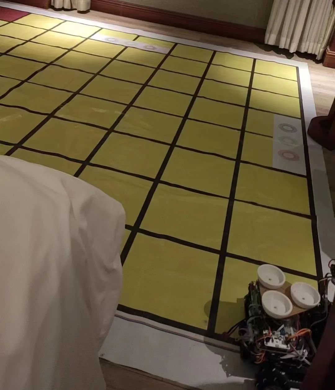 另一边,地图网格黑线的识别也成为“一个机电都没有”队伍拿下一等奖的一大挑战。“车子突然就往板子上撞。”回忆起比赛当天的情形陈文谦仍心有余悸。当时其他队伍还没有走完比赛,陈文谦等人赶紧先把机器收回来,为第二轮比赛前的调试争取多一些时间。