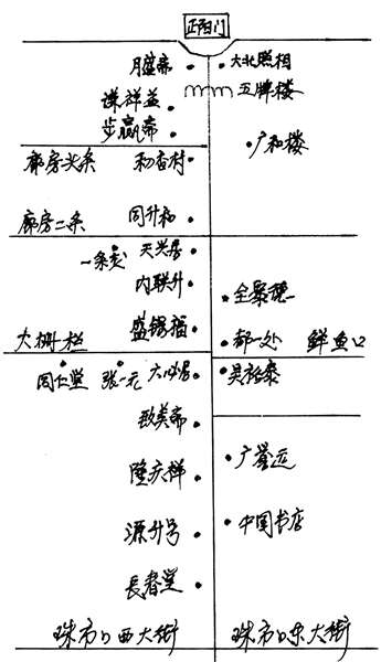 为了探寻中轴线老字号牌匾背后的轶闻趣事,我特意邀请了研究北京牌匾文化多年的高先生与我同行。因中轴线老字号主要集中在南段,也就是前门大街,所以我们的寻访从正阳门箭楼前的五牌楼开始,自北向南而行。