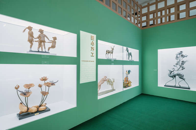 展览共分为“溪水流长”“茶韵香悠”“藤姿铁艺”“民俗乡情”等4个单元,涵盖瓷器、竹器、金属器、藤器、水晶器等材质,以及乐器、服饰、书法、文献等种类,展现了自古及今的安溪人民编织美好生活的精神风貌。