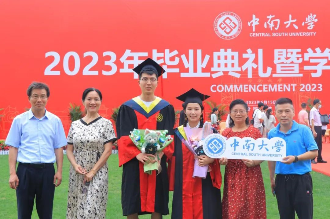 连忙向两边的家人们招手,笑着示意大家快来合照。杨永强对脚下的这条红毯并不陌生,因为这已经是他在中南的第三次毕业了。每一次,他的父母和姐姐都会特地从广东赶来,只为了见证他为这段旅程画下圆满的句号。这一次,或许是最特殊的终点,因为他即将和满载自己11年青春回忆的中南挥手作别,也因为与他并肩的人多了一位——潘奕偲。