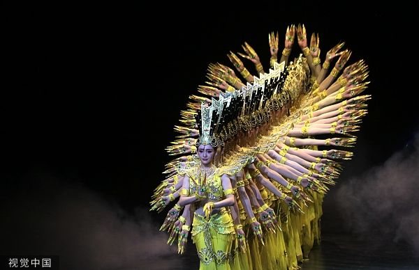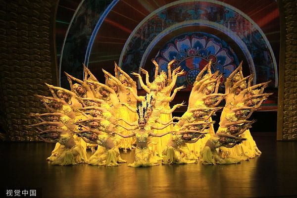 2023年6月18日晚,甘肃酒泉,大型情景音画剧《千手千眼》在丝路敦煌首演。