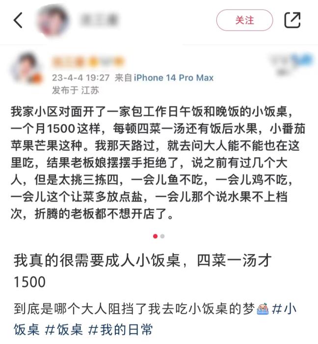 “加入学生小饭桌”是不少打工人的心愿。中新财经注意到,在社交平台上,很多人询问是否可加入学生小饭桌,一些小饭桌也打出了“学生与成人皆可”的广告。