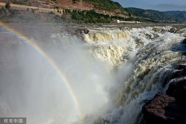 近日,随着上游来水量减少,黄河晋陕峡谷水位回落,壶口瀑布落差加大,呈现出“清流飞瀑”和彩虹美景,吸引了众多游客前来观看。