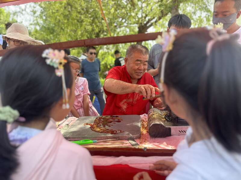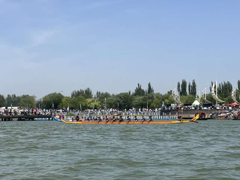 中国青年报客户端包头6月22日电(中青报·中青网记者 石佳)今年端午节期间,内蒙古各地推出龙舟竞赛、国潮演出等丰富多彩的活动,共祝端午安康。6月22日,内蒙古包头市南海湿地景区人头攒动、热闹非凡,大家为正在举行的龙舟竞赛呐喊助威。现场还设置了民俗体验区,青少年围观制作糖人、制作面塑等非物质文化遗产,还可以品尝凉糕、体验汉服,尽享中华传统节日的独特魅力。