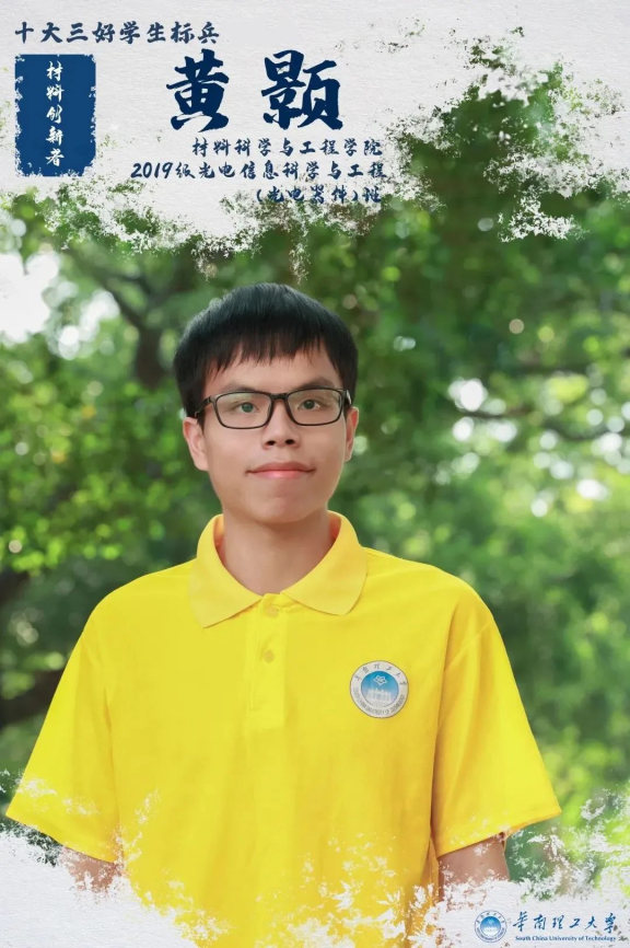 2019年9月,选择材料专业的黄颢,开启了他在华工的学习之旅。大一时,黄颢并没有非常明确的目标,也经历过和许多同学一样的“迷茫期”。但黄颢并没有因此放纵自己,而是对自己提出了更高的要求,“让自己的成绩保持在一个相对优秀的水平”。这期间,他还广泛了解材料专业不同方向的信息,在学习的过程中逐步找到研究兴趣,在专业分流时选择了综合性较强的光电材料专业。