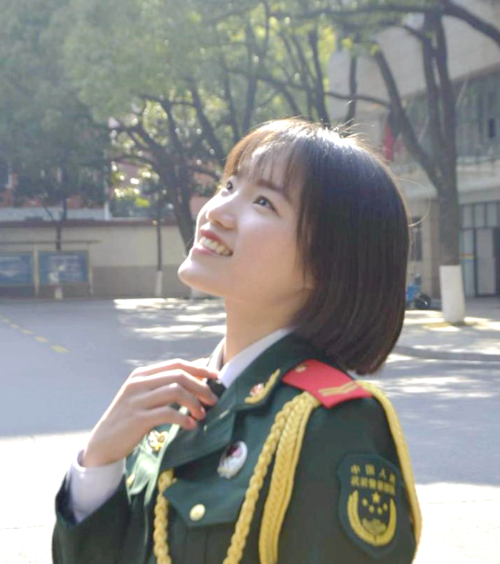 大一的军事理论课上,老师的一句“参军报国,无上光荣”让人文与法学学院2020级的陈诗婷萌生了“为自己的青春添上一抹迷彩”的念头。2021年3月,她如愿入伍,成为了一名武装警察。