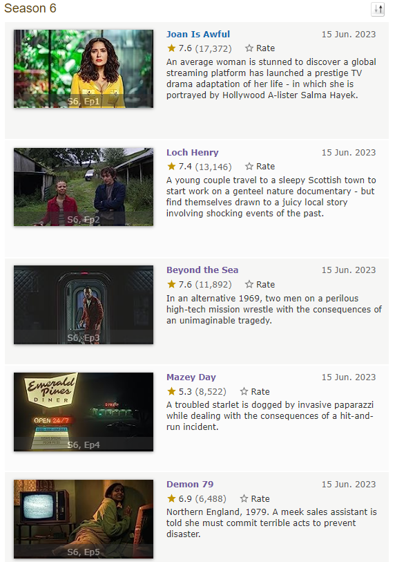 在新科技、新媒介的加持下,人性如何一步步走坏直到一败涂地,一直是《黑镜》(Black Mirror)故事的核心。令人印象深刻的第一季之后,它每季奉献几个黑色寓言,已经出到第六季。